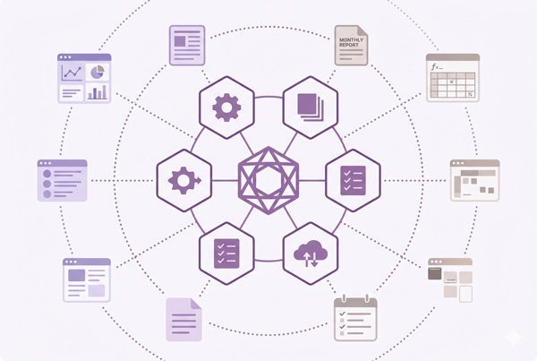 Anthropic社のClaude Codeを軸に、ソリシオが自社の実務で活用しているAI業務基盤を貴社向けに構築します。